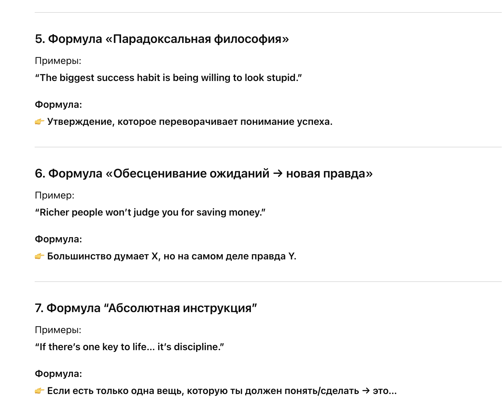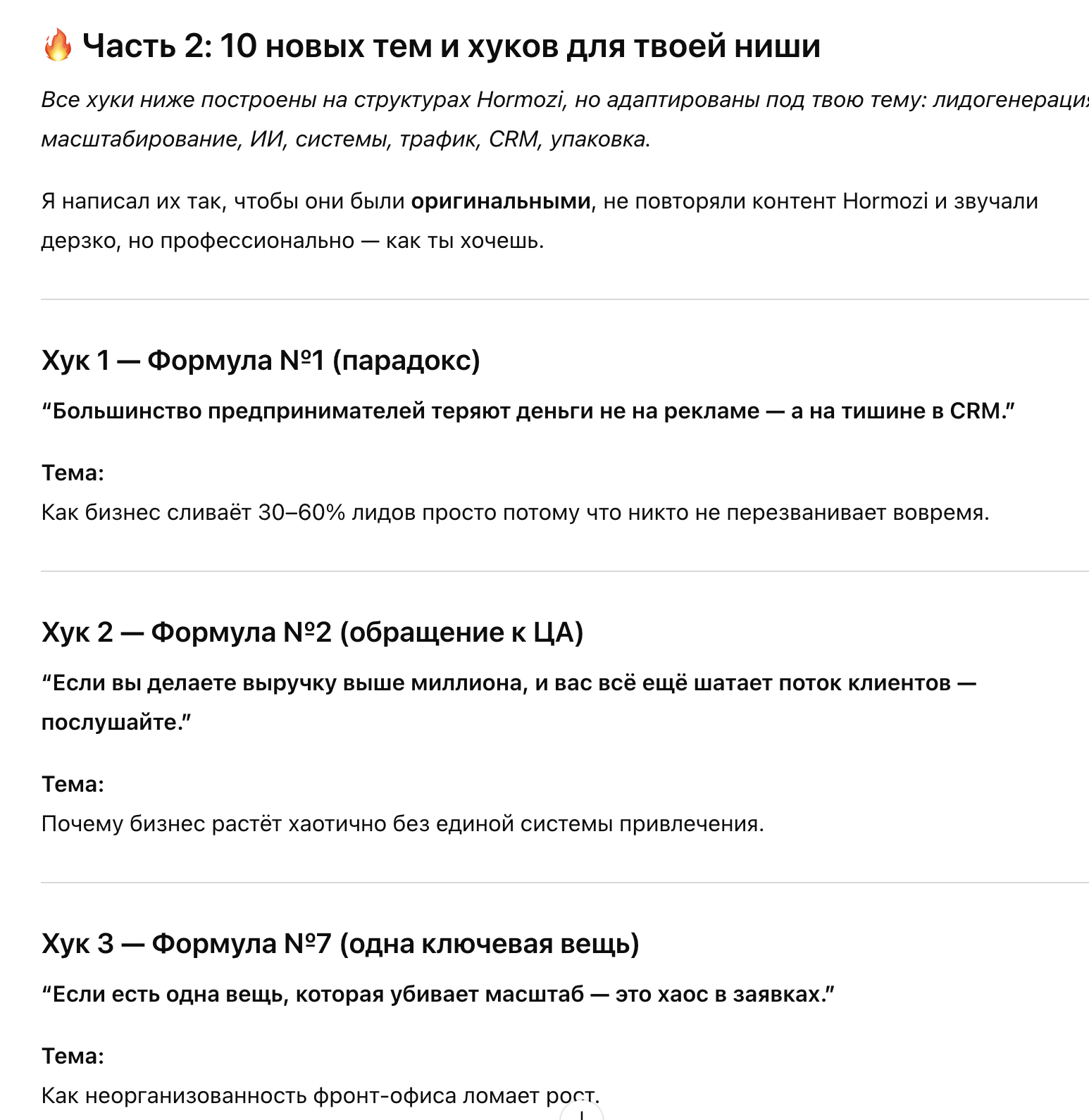 2. Найти между разными видео похожие форматы хуков и выделить их в формулы.